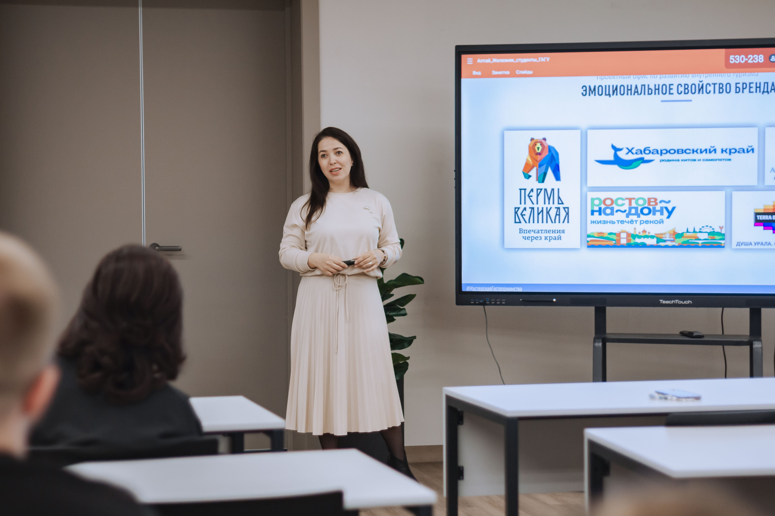 13-14 апреля в нашем университете для студентов, обучающихся по направлениям Туризм и Гостиничное дело, прошли интерактивные лекции и мастер-классы от Амалии Акоповой (эксперта по внутреннему туризму, креативного продюсера, автора проекта «Медиа Амбассадоры», журналиста и ведущей авторской программы «Дома ХОРОШО!» на радио «Москва FM»), Юлии Железняк (победителя второго сезона конкурса «Мастера гостеприимства», руководителя АНО «Мастерская гостеприимства», посла гостеприимства Удмуртской Республики), а также первого заместителя Министра экономического развития Республики Алтай Ольги Филипенковой.