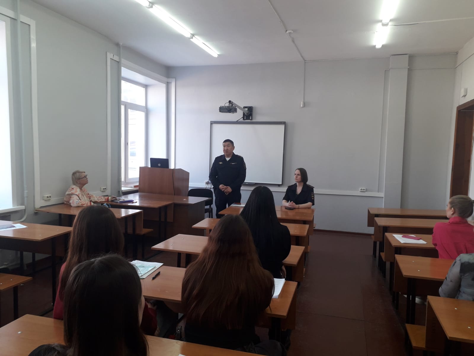 В частности, подполковник полиции А.Н.Тенгереков ознакомил студентов с новеллами законодательства, предусматривающими ответственность за ряд правонарушений в сфере охраны общественного порядка, озвучил статистику совершенных преступлений на территории г. Горно-Алтайска. Разговор не ограничивался только темой профилактики, студенты проявили значительный интерес к деятельности полиции, в том числе к вопросам борьбы с коррупцией. Полицейский разъяснил, в чем заключается опасность коррупции, почему правоохранительные органы активно борются с такими преступлениями, и привел примеры случаев, когда попытки решить вопросы с помощью подкупа приводили граждан к уголовной ответственности.